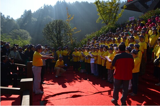 千人合唱团,阵阵的歌声,响遍了整个天堂寨,歌唱着祖国,歌唱着美好的生活!